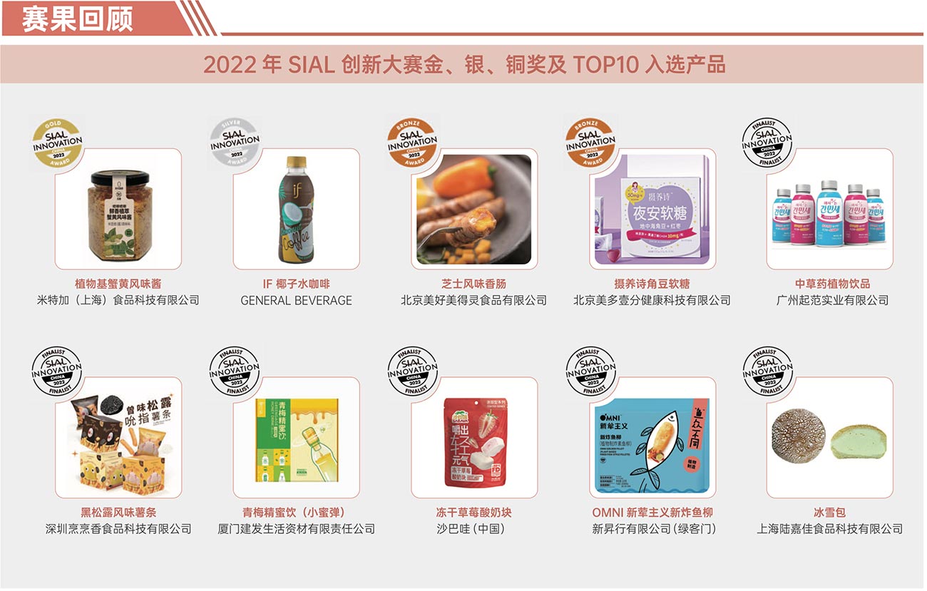 | 2023年2月15日 SIAL西雅國(guó)際食品展(音譯中文簡(jiǎn)稱:西雅展)官方食飲創(chuàng)新賽事 “SIAL Innovation 創(chuàng)新大賽”正式開賽,線上參賽報(bào)名通道現(xiàn)已正式開放, 所有SIAL西雅國(guó)際食品展(上海)展商均可通過(guò)展商服務(wù)中心-創(chuàng)新大賽入口免費(fèi)報(bào)名參加。 | ||||||||||||||||||||||||||||||||||||||||