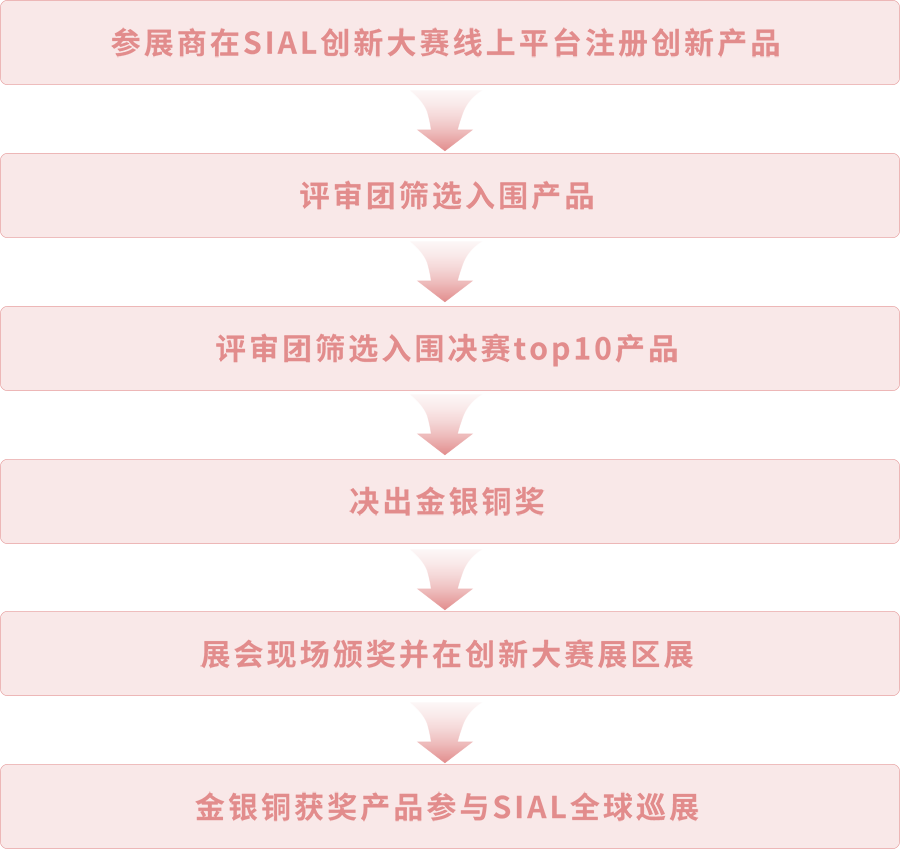 | · 2023 SIAL 西雅國(guó)際食品展(上海)所有參展商(獨(dú)立展商及展團(tuán))均可免費(fèi)參與SIAL 創(chuàng)新大賽,可提交一個(gè)或多個(gè)參展產(chǎn)品。 · 參賽產(chǎn)品需是2022年9月以后研發(fā)或發(fā)布的新產(chǎn)品。 | ||||||||||||||||||||||||||||||||||||||||