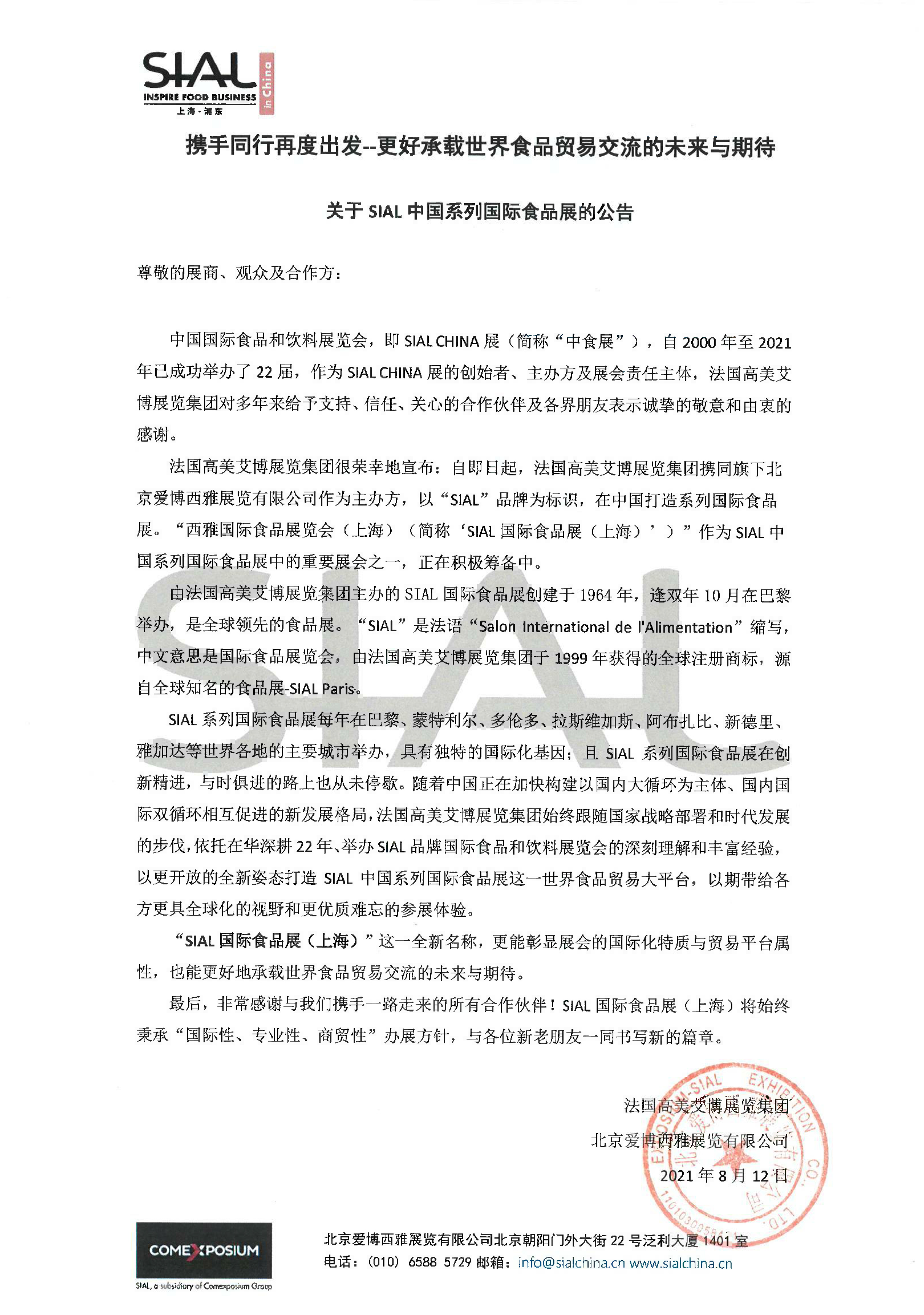 關(guān)于SIAL中國(guó)系列國(guó)際食品展的公告