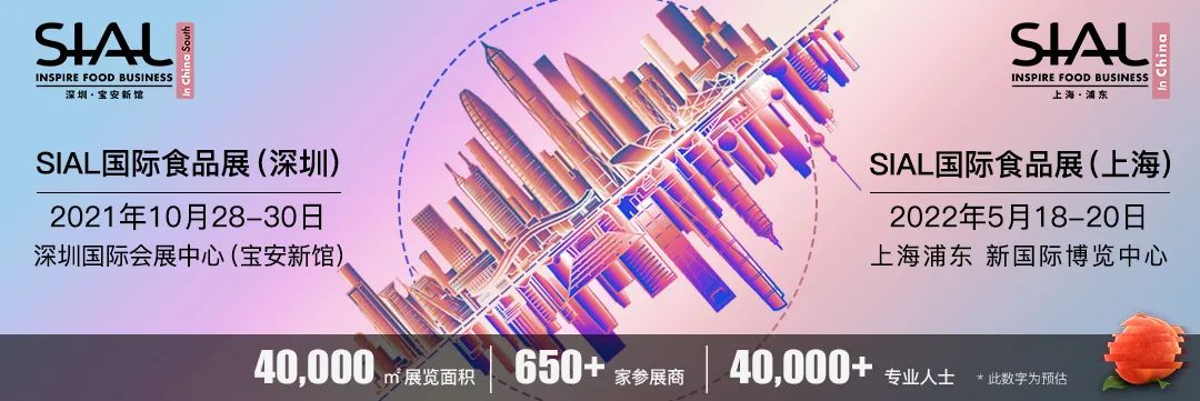 SIAL國際食品展(深圳)將于2021年10月28-30日在深圳寶安新館舉辦,展會規(guī)模將達到4萬平米,展商數(shù)量將達到650+,專業(yè)人士將達到40,000+。