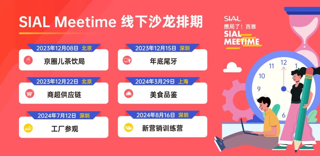 <SIAL Meetime 攢局了!西雅>是SIAL西雅國際食品展面向食飲行業推出的全新主題系列沙龍活動,每一期以不同形式主題活動召集食品、飲料、餐飲行業從業者參與,在輕松愉悅的氛圍中獲取行業知識,結交新的伙伴,開拓更多潛在商機。