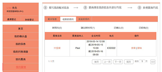 在觀眾中心首頁(yè),您可找到預(yù)約展商的菜單,