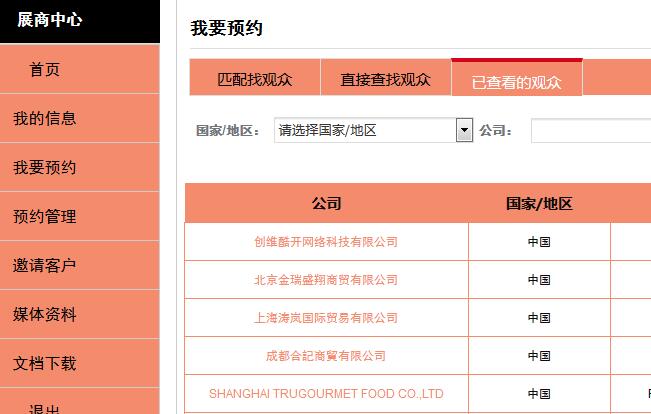 通過登錄系統(tǒng)不僅可以提前預(yù)覽展商名單,還能提前預(yù)約心儀的觀眾于5月14至16日間的任何時(shí)段于中食展現(xiàn)場(chǎng)見面,快捷高效。